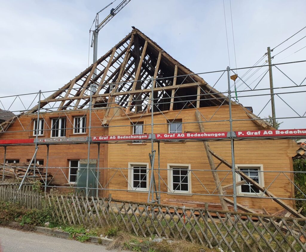 In Rütschelen wurde der alte Dachstuhl abgebrochen und danach der neue Dachstuhl von uns Aufgerichtet.Anfang 2021 werden noch die äusseren und inneren Verkleidungen folgen.