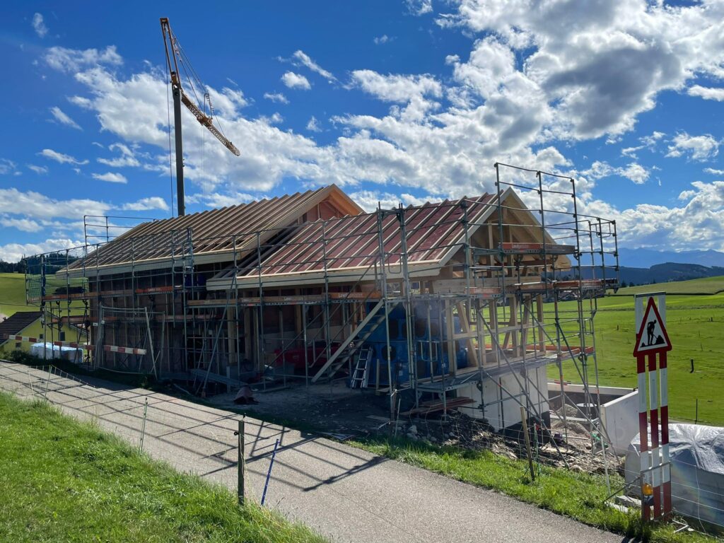 Ende August durften wir In Arni die Dachkonstruktion und den Carport Aufrichten.Danach wurde noch die Fassaden Dämmung und Fassadenverkleidung von unserer Seite montiert.Anfang Dezember waren wir mit unseren Arbeiten fertig und die Eigentümer konnten das Einfamilienhaus beziehen.Wir wünschen der Bauherrschaft viele schöne Stunden in Ihrem Eigenheim.