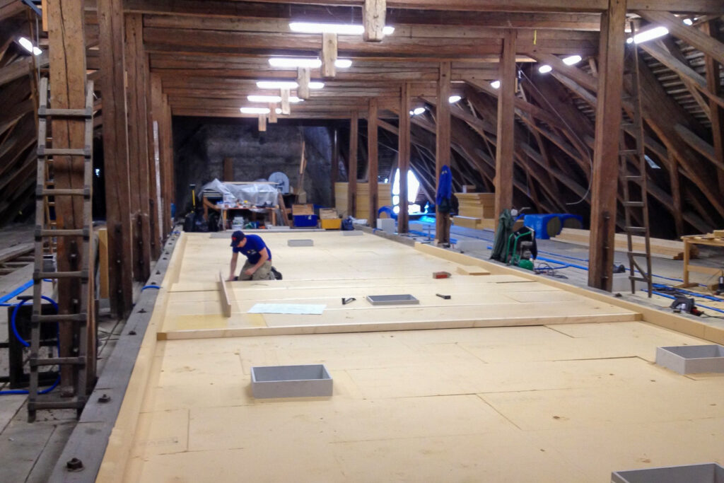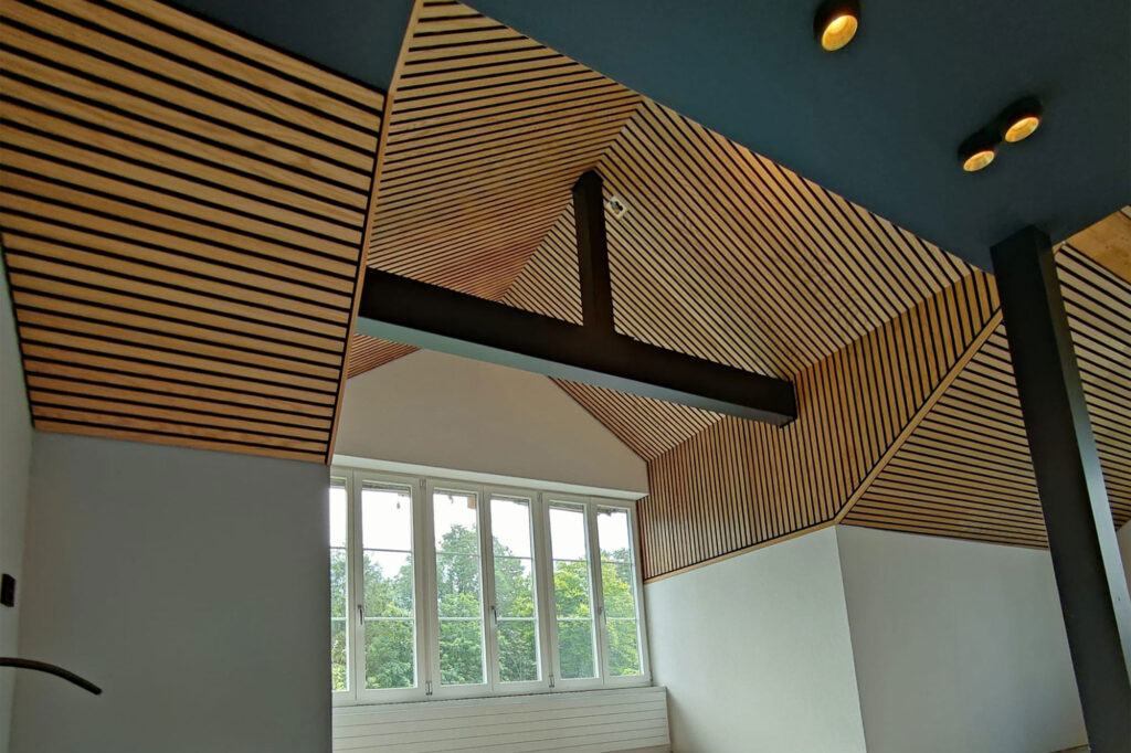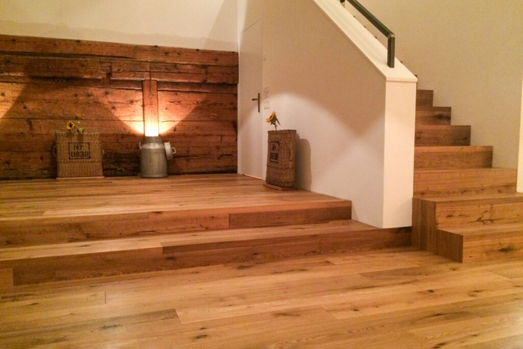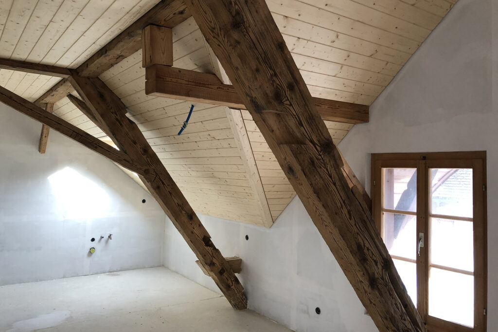 Arbeiten: Dachsanierung, Wärmedämmung, Innenausbau, Altholzverkleidungen und Bodenbeläge