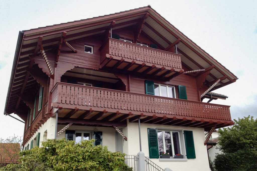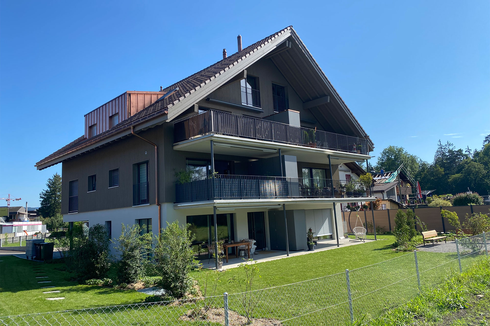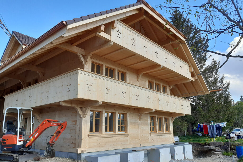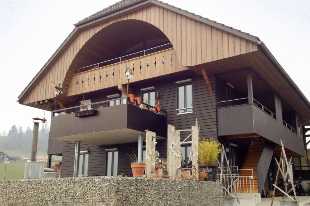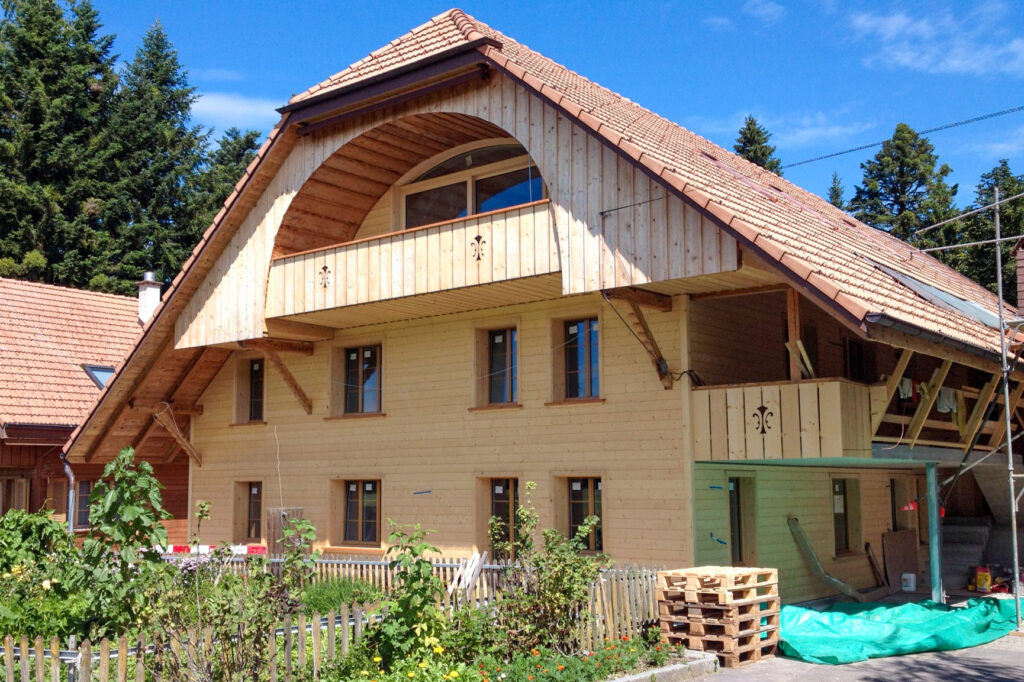 Arbeiten: Dachsanierung, Einbau Lukarne, Fassadenverkleidung, Balkonanbau, Wärmedämmung, Innenausbau und Geschossdecken.