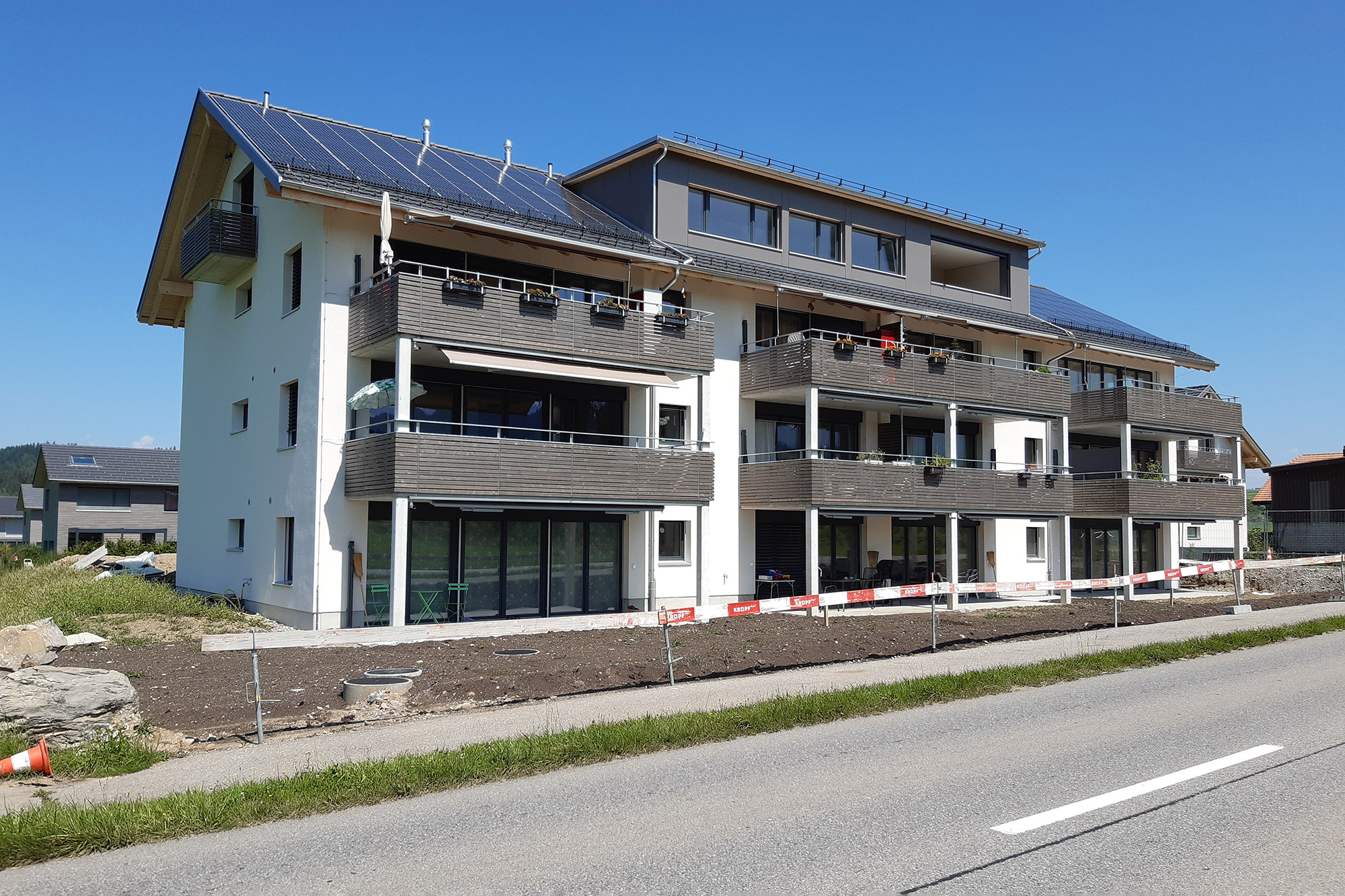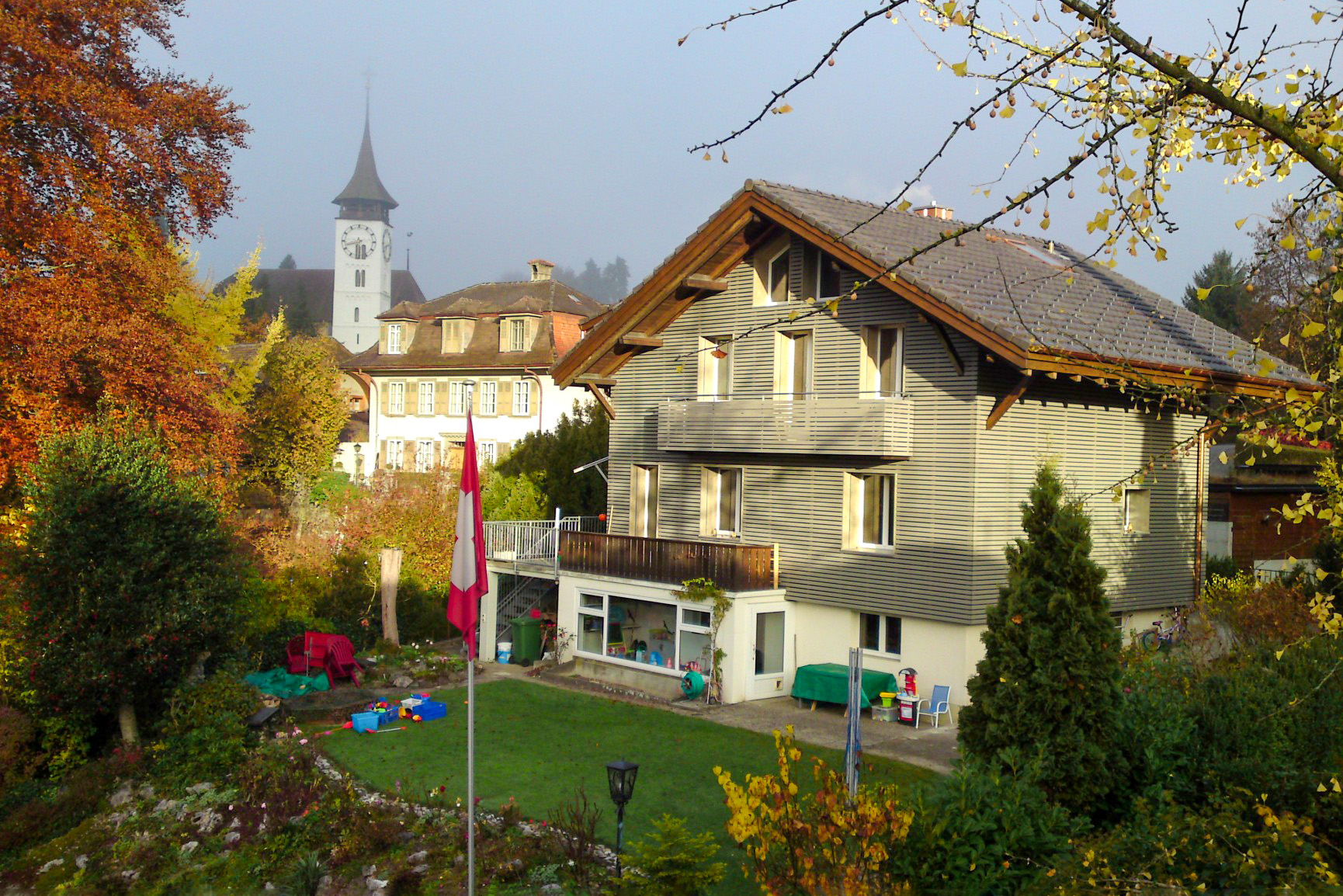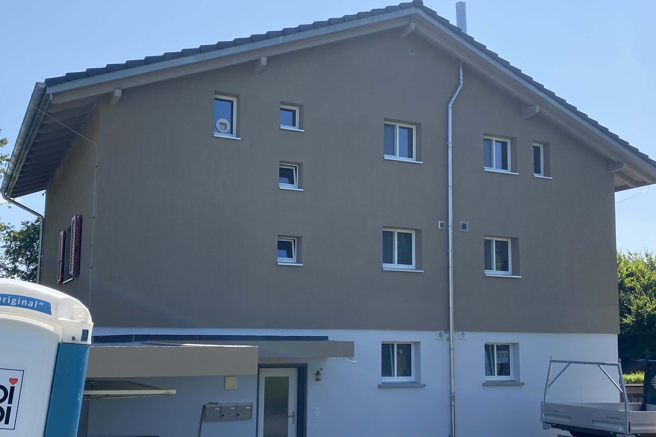 Arbeiten: Dachsanierung, Einbau Lukarne, Fassadenverkleidung, Balkonanbau, Wärmedämmung, Innenausbau und Geschossdecken.