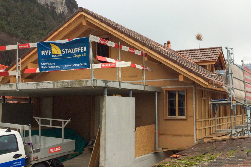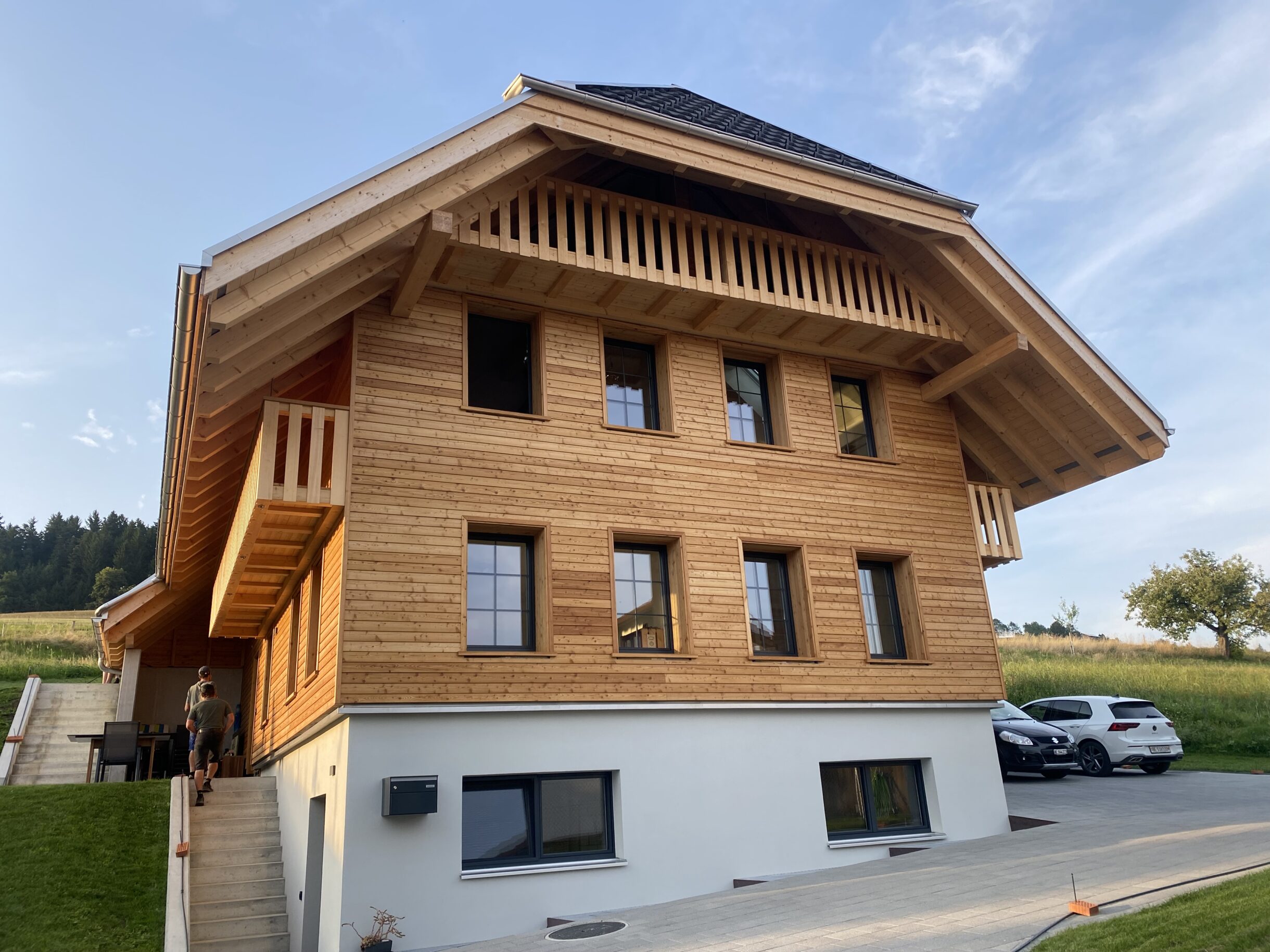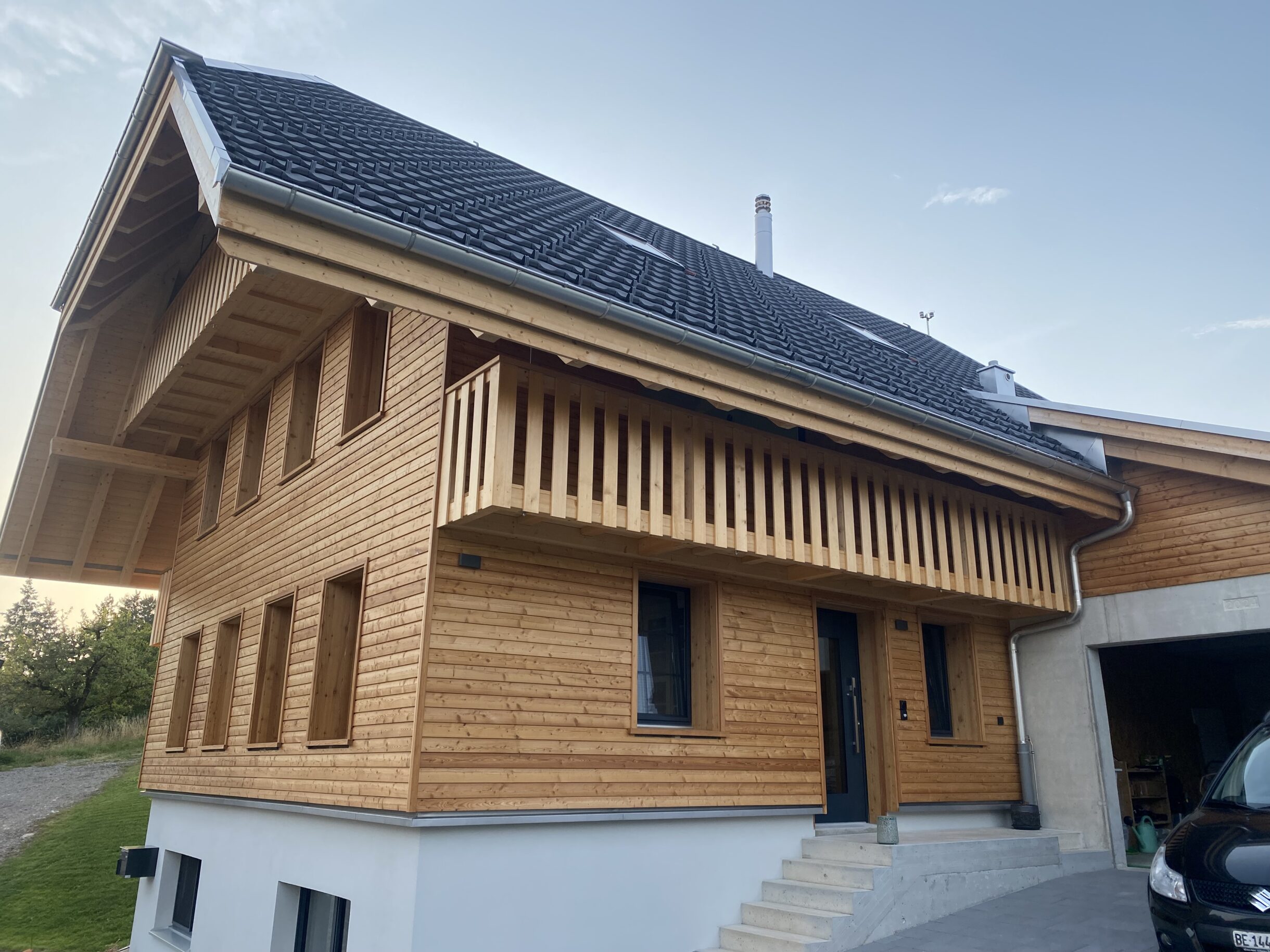 Arbeiten: Holzkonstruktion, Unterdach, Wärmedämmung, Fassade, Innenausbau, Treppe