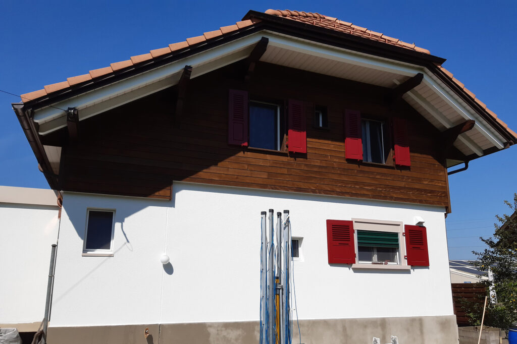 Arbeiten: Dachsanierung, energetische Sanierung, Estrich-Verkleidungen, Wärmedämmungen, Putzträgerplatten Fassade und Aluminium-Fensterläden